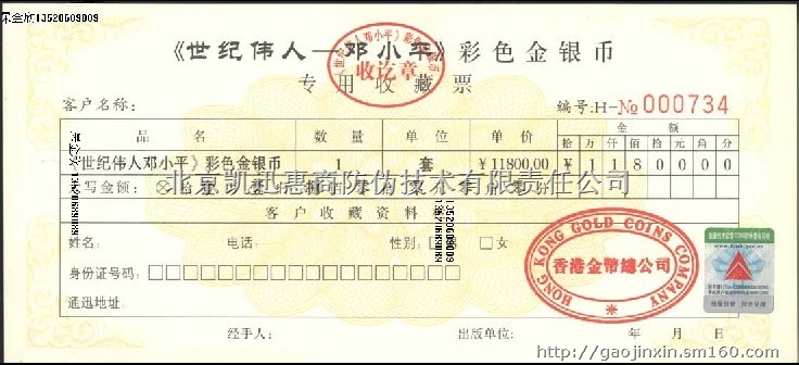 北京凯迅惠商防伪技术有限公司,通过外派专业技术人员出国学习深造,逐步掌握了当前世界上安全防伪领域最新设计理念和防伪设计技术手段,借助现代蒙泰、方正超线等最新防伪设计软件系统,利用团花、浮雕、潜影等多种防伪技术效果将荧光油墨、镜像变色油墨、感光油墨、OVI油墨等多种特种防伪油墨采用四色+专色或凹版印刷技术直接印刷在水印防伪纸、安全线防伪纸或者防复印纸等特殊功能纸张上制作而成。