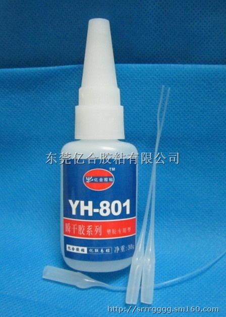 YH-801用于塑胶通用型快干胶水,粘接ABS与PVC塑料、透明亚克力粘PS粘接胶水,PVC粘接PC快干塑胶胶水等适用于塑胶玩具、塑胶电子产品,如:ABS、PS、PC、PMMA、PVC、475、K料通用于:电子,金属,塑料,橡胶,玩具,皮革,或电镀塑胶材质等之间的快速粘接等,抗冲击性能好,抗剥离强度高,即可填充一定间隙!具有透明高粘接力强,不白化等特点。各种塑胶、首饰、工艺品、工具行业,电子类等产品之间的快速粘合,粘合力强。耐冲击,耐湿性好,耐振动,耐剥离及耐热性能优良,耐老化,能起填充间隙作用。广泛应用于玩具,饰品;首饰、工艺品、电子电器,工具等行业,该产品具有透明度高,粘接力好,操作方便,无白化等特点:低稠度,高粘接强度 综合性能优