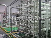 其一般流程为原水箱→原水泵→石英砂罐→活性炭罐→热交换器→软化器→保安过滤器→高压泵→膜元件→纯水箱等部分组成。根据不同的客户实际要求,有的系统里设有抛光混床EDI装置,紫外杀菌UV灯等。而系统的主要元件RO膜是在外压作用下,使水透过特制的半透膜,从溶液中分离出来,从而达到淡化、净化或浓缩分离目的一项实用技术,可去除水中绝大部分离子,水中的微细颗粒、细菌及有机物等杂质,是目前水质深度净化的一种先进、经济的手段。系统脱盐率达98%-99.8%,回收率达50-75%。主要用于发电厂锅炉补给水,电子工业超纯水,制药工业、化妆品工业用纯化水系统。