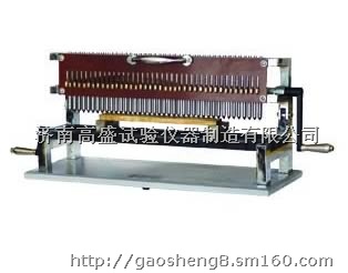 DX-300型金属拉伸试样标距仪(亦称钢筋标距仪)是根据新国标研制并按照GB228-2008金属材料拉伸试验的规定要求设计制造。钢筋标距仪生产规格为300m/m、400m/m(DX-400型)二种,适用于圆钢、扁钢、钢管、型钢及其它有色金属材料打点标距,供抗拉试样之用。高盛标距仪构造精密,使用方便,打点准确,工作效率高,操作简便,是试验室必备的配套仪器。