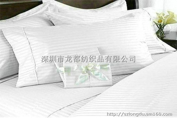 龙都纺织品公司厂家直销酒店床上用品,宾馆床上用品,酒店布草系列,三公分缎条为酒店常规用料,龙都公司提供40S,60S全棉三公分缎条被套,床单,枕套,T/C面料三公分缎条被套,床单,枕套,可以按用户订单尺寸生产。