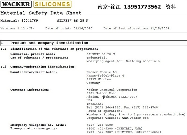 | 特 征 | SILRES BS 28N是含溶剂的硅烷、硅氧烷和合成树脂的混合物。其稀释液可涂刷在无机基材的表面,作为憎水和憎油剂。经它处理过的基材孔隙仍然开放,材料的水汽透过率几乎不受影响。 | |