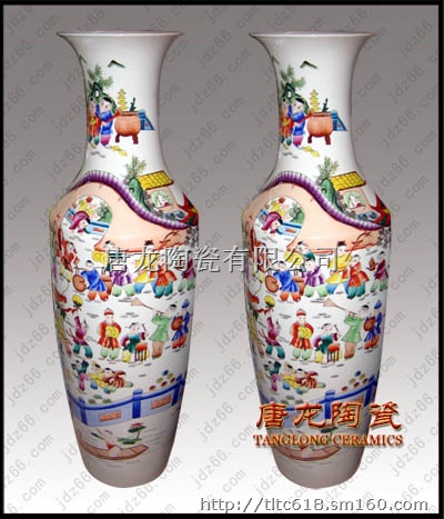 陶瓷大花瓶多用于大厅、门厅、客厅等摆设,主要用于开业礼品,大楼建筑落成、工程竣工开业、奠基典礼、酒店宾馆陈设、企事业单位乔迁、周年纪念、学校校庆、搬迁新居等。有特殊需要,在大花瓶身上可烧制LOGO、公司名称、人名、赠言,纪念用语,年月日等。全手工绘制,高白泥手工拉胚,高白釉上底色。陶瓷大花瓶要经过淘泥、摞泥、拉坯、修坯、绘画、上釉、烧窑、成瓷等近七十道工艺才能制做完成。