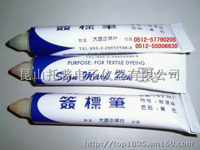 该笔在纺织物上标写的记号经过一系列漂染、高温等加工不褪色、不变色,具有优异的耐化学药剂性和防漂染功能。适用于棉、麻、丝、尼龙、涤纶、纤维化纤、起绒织物、粘胶、醋酸、精纺毛呢、粗纺毛呢、印花版框架、玻璃塑料、陶瓷、金属器皿及橡胶制品。