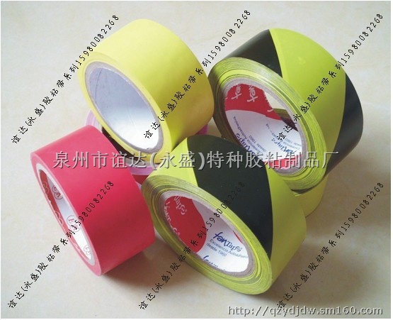 警示胶带又叫标识胶带、贴地胶带、地板胶带、地标胶带等。 是以PVC薄膜为基材的胶带,涂上橡胶型压敏胶制造而成