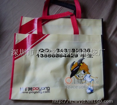 采用无纺布作为原料,环保无污染,规格尺寸可据客户需要定制,产品颜色有多种颜色布料可供参考,产品用途超市购物,商场购物,企业宣传,促销活动,广告宣传,环保公益活动。耐用环保美观让您的产品更显高贵时尚和竞争力。欢迎来样来稿设计订做,洽谈!