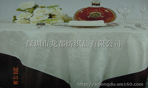 深圳市龙都纺织品有限公司供应餐饮系列;多种颜色中高档 :纯棉台布,涤棉台布,缎面台布,提花台布,化纤台布,亚麻台布,.口布,台垫,纳米餐垫 ,台裙,台呢,椅套 印花台布具有不褪色、耐洗、耐磨、色泽艳丽、平整挺括且使用寿命长的特点,印花台布规格2.8m,表面绣有花朵图案作装饰,造型典雅、大气,精美时尚,使整体更加美观,深受广大消费者的喜爱。白色印花台布采用优质化纤材料制作而成。近百种提花可供用户挑选,可以按用户订单尺寸生产。