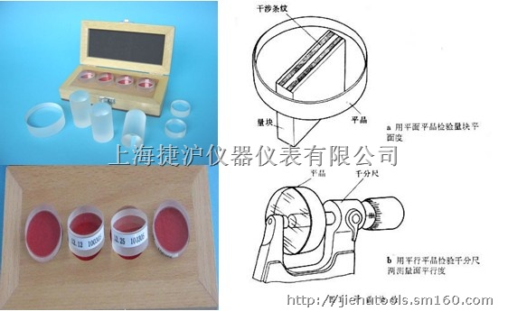 光学平晶,由优质光学玻璃经精细研磨而成。具有两个(或一个)光学测量平面的正圆柱形或长方形的量规。通过其产生的光波干涉条纹来检测被测物体平面度和平行度的一种工具。