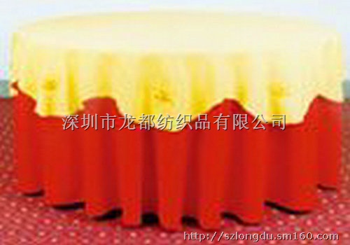 深圳市龙都纺织品有限公司供应餐饮系列;多种颜色中高档 :纯棉台布,涤棉台布,缎面台布,提花台布,化纤台布,亚麻台布,.口布,台垫,纳米餐垫 ,台裙,台呢,椅套 印花台布具有不褪色、耐洗、耐磨、色泽艳丽、平整挺括且使用寿命长的特点,印花台布规格2.8m,表面绣有花朵图案作装饰,造型典雅、大气,精美时尚,使整体更加美观,深受广大消费者的喜爱。白色印花台布采用优质化纤材料制作而成。近百种提花可供用户挑选,可以按用户订单尺寸生产。