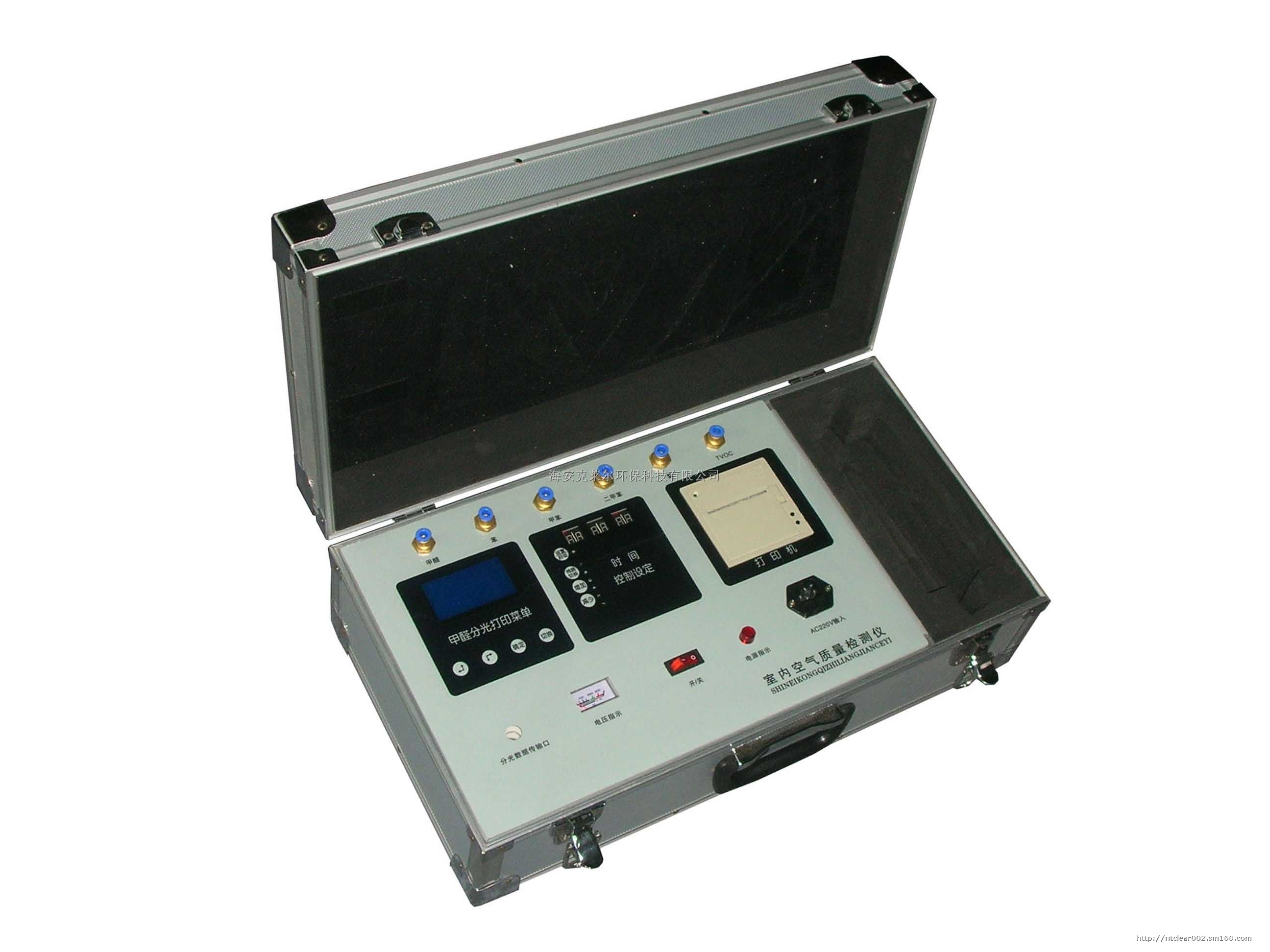 “NTC-5”八合一分光打印检测仪器(数据调整)除了具备-3,-4所有功能外,更增加了人机对话菜单,温湿度时间显示一体数据调整功能,可以现场打印出即时温湿度时间及检测数据,人机对话菜单设计更为合理,使用更便捷,由于采用进口分光IC,内部分光组构件采用模具制作,使得检测数据较同类产品更为稳定,绝对不会像同类产品出现同两台机器数据不一致现象,蓝屏背景灯光更为美观大气,完全符合国际甲醛检测标准,是目前国内较为领先水平的一款八合一室内环境分光打印检测仪器。