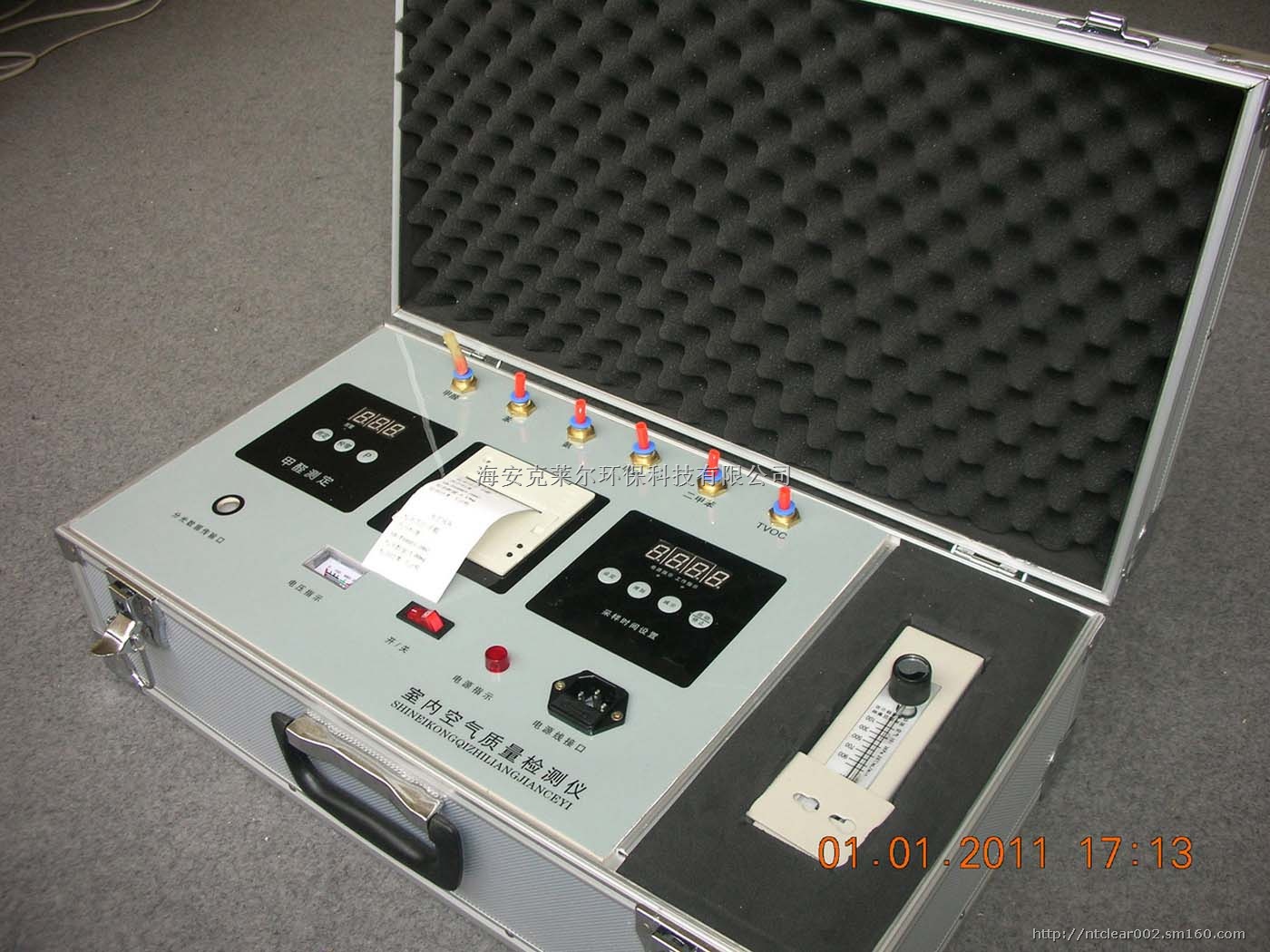 “NTC-4”六合一分光打印检测仪器(数据调整)除了具备-3,-2所有功能外,更增加了人机对话菜单,温湿度时间显示一体数据调整功能,可以现场打印出即时温湿度时间及检测数据,人机对话菜单设计更为合理,使用更便捷,由于采用进口分光IC,内部分光组构件采用模具制作,使得检测数据较同类产品更为稳定,绝对不会像同类产品出现同两台机器数据不一致现象,蓝屏背景灯光更为美观大气,完全符合国际甲醛检测标准,是目前国内较为领先水平的一款六合一室内环境分光打印检测仪器。