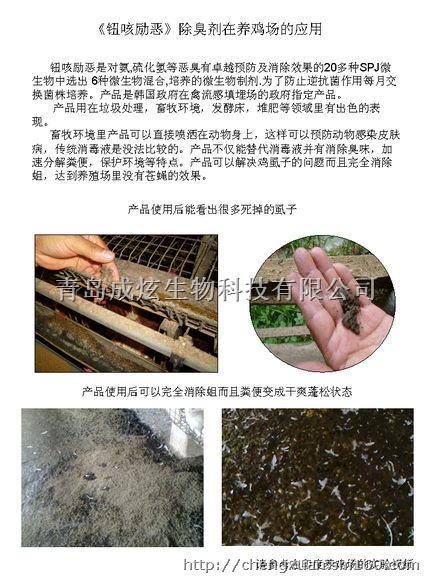 护环境等特点。产品可以解决鸡虱子的问题而且完全消除蛆,达到养殖场里没有苍