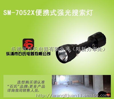 SM-7052X35W强光搜索灯,便携式多功能强光灯,便携式防汛探照灯是石氏电器有限公司设计制造的高性能抗震防水强光搜索灯,品质超群,科技含量高,超白光射程可达3000米,广泛应用于大范围搜索勘查现场布灯照明,根本性地解决了野外或无电源的情况下,可提供正常的搜索勘查现场照明需求;适用于公安巡逻、消防指挥、边防巡视、电力抢修、企事业单位警卫、夜间突发事故搜索、抗洪抢险等。