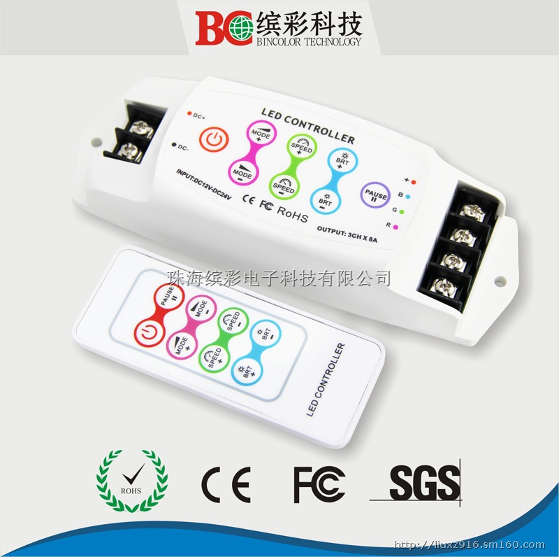 BC-390系列控制器是通用型的RGB整体变色控制器,采用高性能单片机,先进的PWM(脉宽调制)控制技术,具有多种变化模式,可控制所有四线三回路的LED全彩灯饰产品,如:RGB全彩的LED模组、LED灯带、SMD软灯条等LED灯具产品。它采用阻燃PC工程塑料外壳,触摸式功能按钮,磨砂面膜,美观大方,欢迎试用。