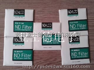 富士Neutral Density (ND) Filters浓度补正滤色片简称减光片,应用于照相时在没有办法或不改变光源强度的情况之下,可以精确的调整曝光量,使得能够在想要的光圈与快门速度条件下,拍摄特殊效果的景物。在LCD液晶显示器产业,ND Filter常被用来减低面板亮度,以便在各种不同亮度条件下检查液晶表面波纹和亮点缺失,以及其它各种FPD之检测应用。