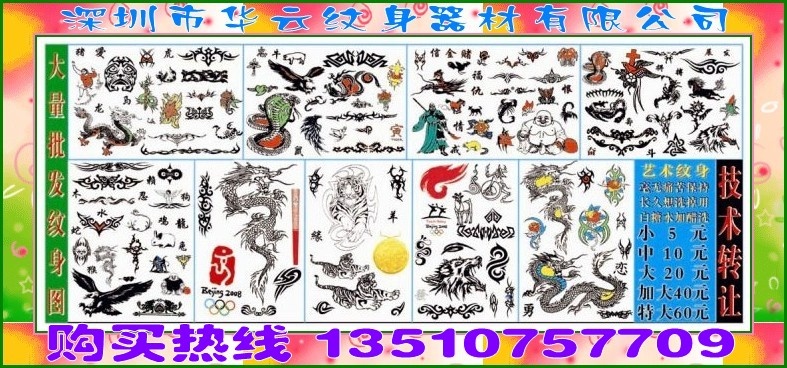 超低价供应纹身模板,80元/套.2012新产品,保证产品质量,技术包教包会,一分钟学会.是个人创业首选,低投资,高收入.有意者请与杨经理联系,24小时为您服务!!! 官方网站 Http:www.szwenshen.cn 全国抢先加盟热线 0755-21598336 24小时热线 13510757709 QQ574204692 联系人:杨经理