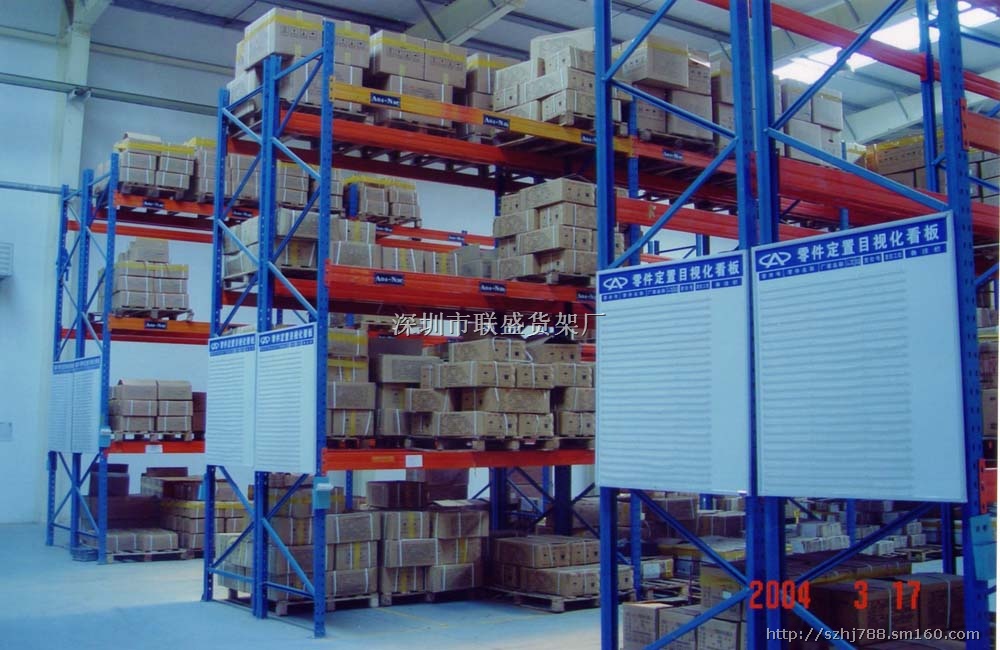 深圳市联盛货架厂专业供应,轻型仓储货架,中型仓储货架,重型货架又称横梁式货架、货位式货架、托盘式货架,是使用最广泛的托盘类货物存储货架,通用性也较强。货架横梁承重每层可高达4500KG。重型货架是货架沿仓库的宽度方向分成若干排,其间有一条巷道,供堆垛起重机、叉车或其他搬运机械运行、每排货架沿仓库纵长方向分为若干列,在垂直方向又分成若干层,从而形成大量货位,用托盘存储货物。货架大多用前移式电瓶叉车、平衡重电瓶叉车、三向叉车进行存取作业,货架高度较低时也可用电动堆高机,超高位仓库可以用堆垛机进行存取作业。