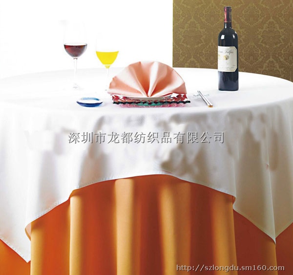 深圳市龙都纺织品有限公司厂家供应餐饮布草系列:酒店台布,餐厅台布,饭店台布,餐桌台布,会议室台布,宴会台布,涤棉台布,提花台布,纯棉台布,涤棉台布,缎面台布,提花台布,化纤台布,亚麻台布,.口布,台垫,纳米餐垫 ,台裙,台呢,椅套 印花台布具有不褪色、耐洗、耐磨、色泽艳丽、平整挺括且使用寿命长的特点,印花台布规格2.8m,表面绣有花朵图案作装饰,造型典雅、大气,精美时尚,使整体更加美观,深受广大消费者的喜爱。白色印花台布采用优质化纤材料制作而成。近百种提花可供用户挑选,可以按用户订单尺寸生产。