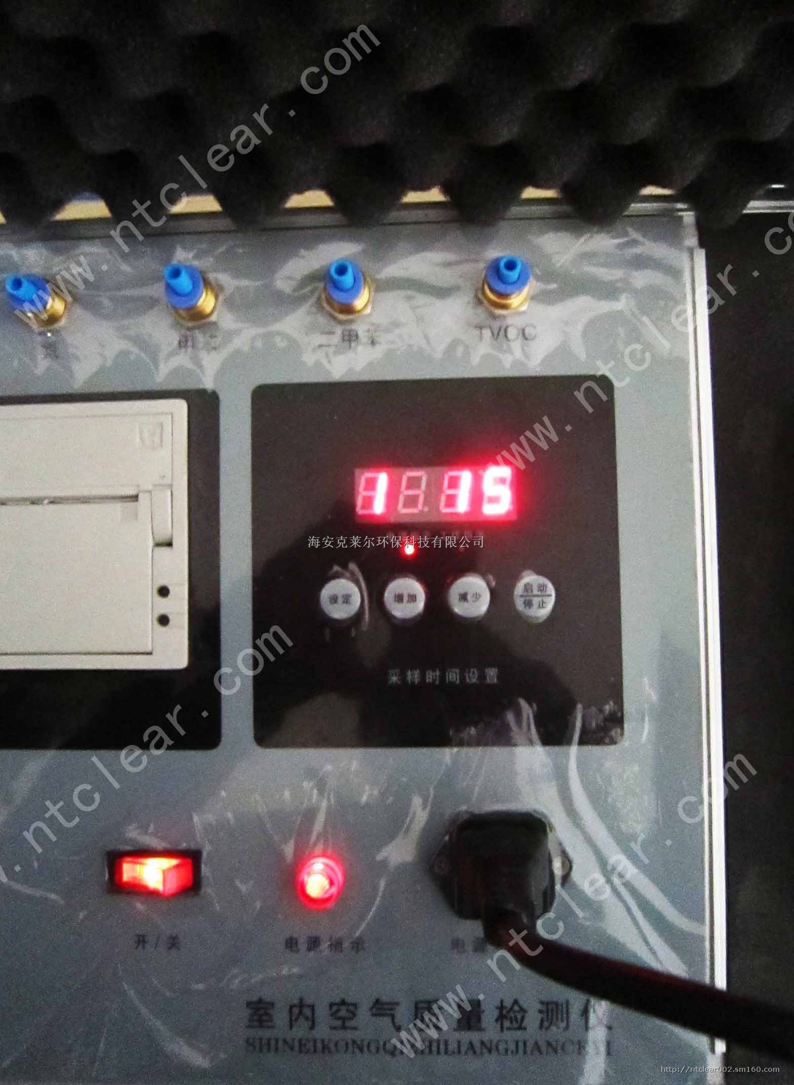 通过定时操作可以设定各个检测项目所需要的的检测时间,检测甲醛时可以通过向左向右调节流量计下方的圆形旋扭来调整检测甲醛时每分钟的空气通过量,甲醛测定区通过操作可以进行甲醛测定、传感器校零、数据打印等工作。