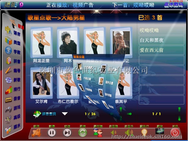 软件简介:本软件由深圳市蓝色世纪公司开发,是蓝冰超影9高清点歌机自带的卡拉OK软件功能限制版。