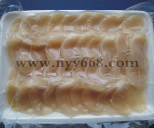 平贝切片最好是自然解冻切片,不要用微波炉加热解冻,否则会影响其口感;且生鱼片请一次食用完,未吃完的生鱼片勿再置冷冻保存后生食。