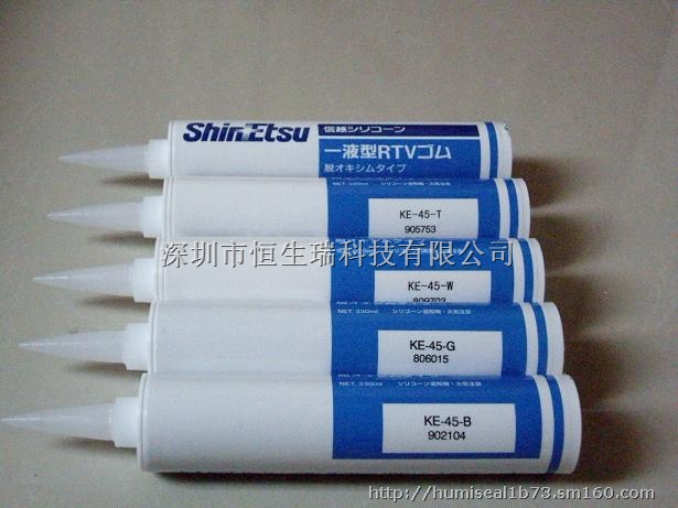 日本信越KE45|ShinEtsu KE-45是一种单组分、中性、快速固化的通用型密封粘接硅橡胶,它适用于一般电气结构密封和绝缘。固化时无明显不良气味,对大多数金属及电器元件没有腐蚀。该产品对于大多数材质表面有很好的粘接力及良好的延展性,尤其对于碱金属、石灰、白水泥等材质的相对于其他类型的硅橡胶而言,粘接力具有优势。它具有很好的耐候性,通过了户外淋雨、曝晒,长期使用性能稳定(寿命达30年)。并具有一定的耐酸、碱、盐、润滑油腐蚀的能力。