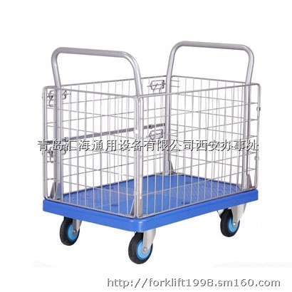 静音手推车由塑料车板、粉体涂装扶手(可折倒、固定)、静音脚轮(尼龙支架、铁板支架)等组成。