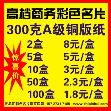 芝品汇全国连锁合版印刷服务、低价格、全国物流配送、网上订印,方便快捷、值得信赖!是一个专业为广告公司、打字社、复印店、名片复印店、数码快印店、公关公司、广告图文设计制作中心、名片行业代理及业务员,并可针对客户的不同需要,印刷厂服务的印刷网站,以名片制作为起点,提供更简单、快捷、实惠的各种印刷品印制服务。 专业为你降低成本、提高利润专业从事彩色名片制作、名片印刷、名片制作,专业拼版DM单页、名片、不干胶;专版印刷样本画册、吊旗、海报、报刊;提供模切异型;无纺布手提袋、纸品礼品袋、封套、红包等服务!广告宣传单、名片、不干胶、彩页印刷品、海报等产品!更多服务请登陆www.zhipinhui.com 。彩色名片价格低至1.6元/盒、1000张彩页只需240元,大量承接二手活,天天拼版、天天印刷。厂家出货,价格低廉、质量可靠。诚信合作、绝无风险! 请将您的文件制作成coreldraw格式,我们就能为您精心印刷,让您的构思完美呈现!我们货运物流配送,实现全国各地网络下单,千里传印。芝品汇努力降低印刷成本,提供优质服务,力求做优秀的名片彩页供应商、彩色名片专业批发商详细请登陆http://www.zhipinhui.com ,电话:157 2731 7185 QQ:911104018 邮箱:zhipinhui@hotmail.com