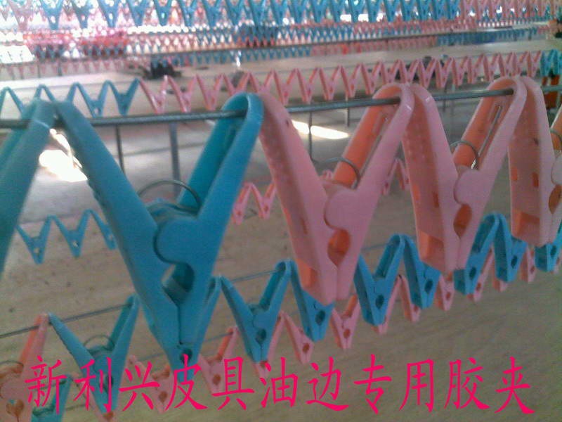 新利兴配件:本公司油边专用胶夹是专门针对皮具油边开发,采集大型油边厂师傅们的见议作为参考设计。本夹采用内圆形弹簧设计,PP料生产,具有弹力较小(上夹易捏开),夹重量大(可夹大形皮包不会掉落),齿痕细微(夹件过夜留齿痕小)。内空大(上夹不易碰边油),穿线孔布置合理,胶质均匀,颜色鲜艳,使用寿命长等特点,是目前针对皮具油边行业开发较成熟的一款胶夹。有需求油边厂/皮具制品厂可直接与我们联系。可提供样办查看。