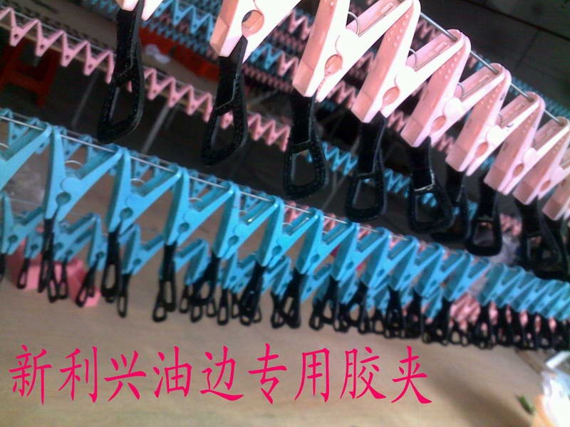 新利兴配件:本公司油边专用胶夹是专门针对皮具油边开发,采集大型油边厂师傅们的见议作为参考设计。本夹采用内圆形弹簧设计,PP料生产,具有弹力较小(上夹易捏开),夹重量大(可夹大形皮包不会掉落),齿痕细微(夹件过夜留齿痕小)。内空大(上夹不易碰边油),穿线孔布置合理,胶质均匀,颜色鲜艳,使用寿命长等特点,是目前针对皮具油边行业开发较成熟的一款胶夹。有需求油边厂/皮具制品厂可直接与我们联系。可提供样办查看。