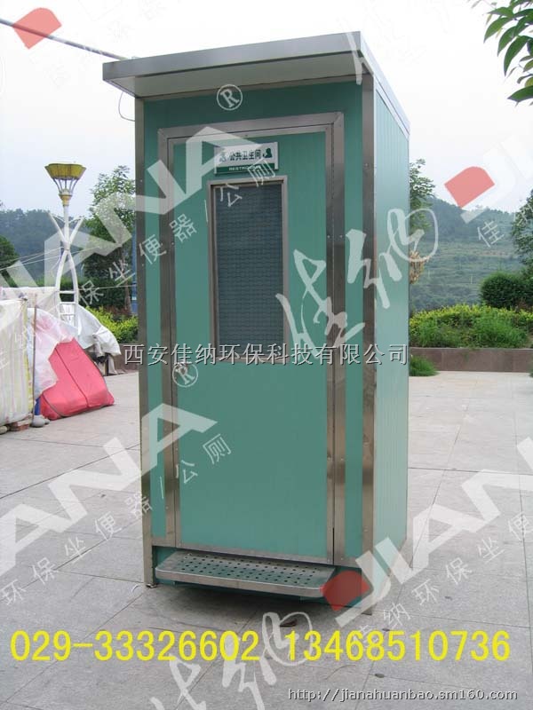 是一种不用水、不用电、不排污、可移动,使用塑料袋包裹粪便的环保移动型厕所。该厕所配备脚踏式全不锈钢厕具,污物流经部分均采用塑料袋自动包裹,密闭效果好,厕间无异味。
