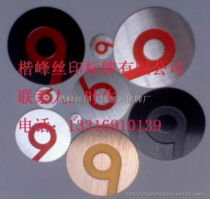 材料可选各种金属板材,如果对铭牌规格要求比较严格的话,同时厚度较厚的,那么就需要先制作一套五金模,用来冲外形及定位孔之类的,铭牌的字体及图案可做凸起或者凹面的都可,蚀刻之后,底面可上各种颜色,同时可电镀表面及过UV或者光油来形成防护层.