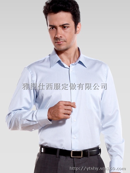 这款是又雅图仕设计师专业设计,100%纯棉面料,穿着舒适,色彩亮丽,具有良好的吸湿性和透气性。水晶蓝色条纹面料使得衬衣清爽更显尊贵,以精湛的做工制作而成,体现出衣服的品质与价值。