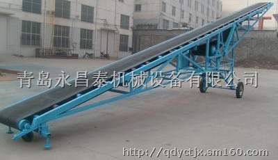 DY型移动式胶带输送机是一种工效高,使用安全可靠,机动性好的连续输送装卸设备。主要用于装卸地点经常变更动的场所,如:港口、码头、车站、煤场、仓库、建筑工地、沙石料场、农场等,用来短途运输及装卸散料或单件重量100公斤以下的成件物品。