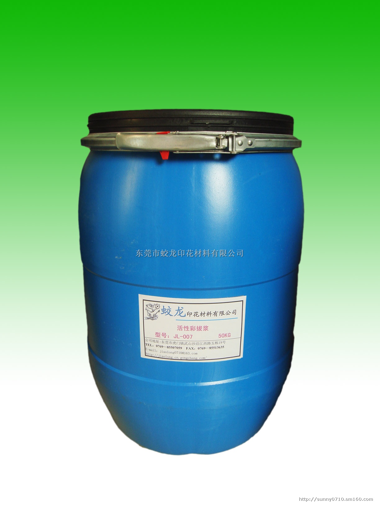 该胶浆主要用于活性染料染色布的拔染印花用浆,其印花效果犹如水浆。此拔染属于还原性的拔染水浆,不会对织物带来损伤,拔染浆适合于圆网,平网及手工台板印花,印花后汽蒸,压烫均随意,终能达到理想效果,该拔染浆可用于白拔及直接色拔。 外 观:拔染水浆: 乳白色,无味。 拔染粉:白色细小结晶体,有还原气味。 PH 值:6.0--7.0 工艺流程:拔白:拔染浆中加入5-7%的拔染粉,并均匀搅拌成拔白水浆。 印 花--自然干燥5分钟--二次印花--自然干燥5分钟--趁湿过烘道150℃ 拔 彩:拔染浆中加入5-7%的拔染粉,再加入色浆及固色剂并均匀搅拌成拔彩水浆。 印花--自然干燥5分钟--二次印花--自然干燥5分钟--趁湿过烘道150℃ 环 保:属于环保类胶浆。注意事项:必须选用活性易拔染布料,可用水或者增稠剂来调配水浆的稀稠,拔染水浆不易太稠,否则会影响其渗透性