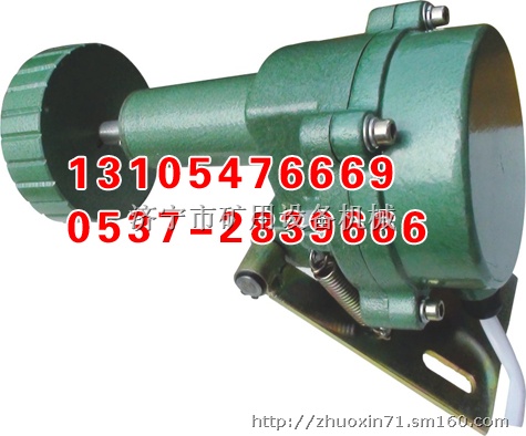速度检测器水平安装在上行胶带和下行胶带间的输送机支架上,使出来与胶带表面有一定的压力防止发生触轮跳动而产生的误动作。速度检测器无需工作电源即可工作,当胶带机运行速度低于本产品的设定值时,检测器重的继电器动作输出控制信号,速度可任意调节。