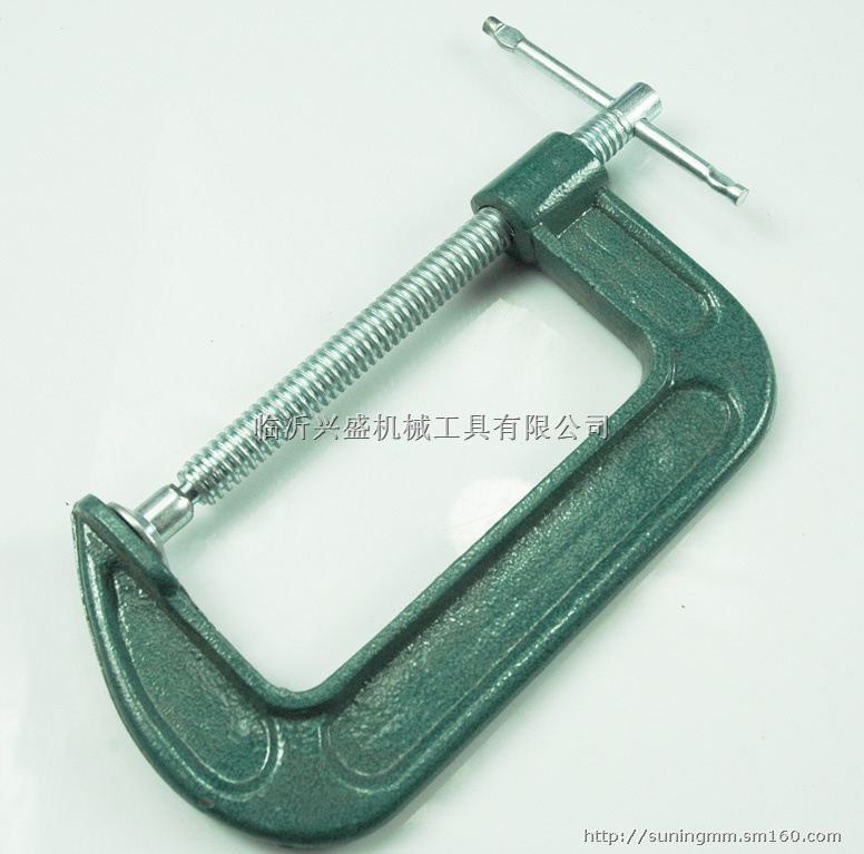 描述:G字夹是用于夹持各种形状的工件、模块等起固定作用的G字型的一种五金工具。G字夹又叫虾弓码、C字夹、木工夹等。使用范围广泛,携带方便,由于主体是铸钢件,故使用受命长。G字夹采用螺纹旋进式设计,可以自由调节所要夹持的范围,夹持力量大。采用45号高素炭钢热锻而成。整体热处理,耐用性强,强度更大。球墨铸铁,丝杆镀锌或发黑。