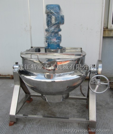 4、带搅拌装置锅体:顶部中心搅拌,减速机输出轴与搅拌桨轴采用活套连接,方便拆装与清洗。