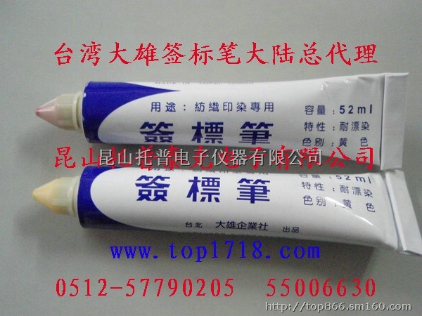 台湾大雄企业社创立于一九七一年,在纺织,印染界已经有三十多年历史,为适应市场需求,满足客户需要,在江苏省昆山市设立批发处(托普电子仪器,台湾大雄签标笔总代理)