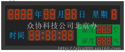 9、支持单面、双面数字式显示。显示内容有:年月日星期,温度和湿度,时分秒。显示尺寸和内容排布等,都可根据用户要求定制;