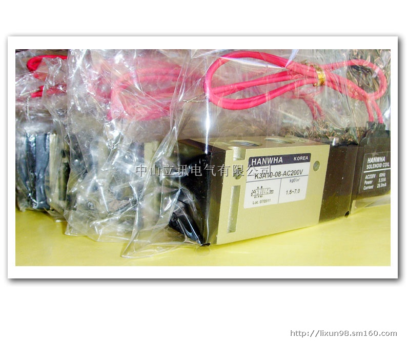 中山立讯电气有限公司代理HANWHA韩华电磁阀、气缸、连接器、阀门等全系列气动产品,型号齐全,价格优惠,欢迎来电咨询。电话:0760-88488814,传真:0760-88488814 黄先生13435724573,QQ99714202;1372000837或登录公司网站:http://www.lixun8.com