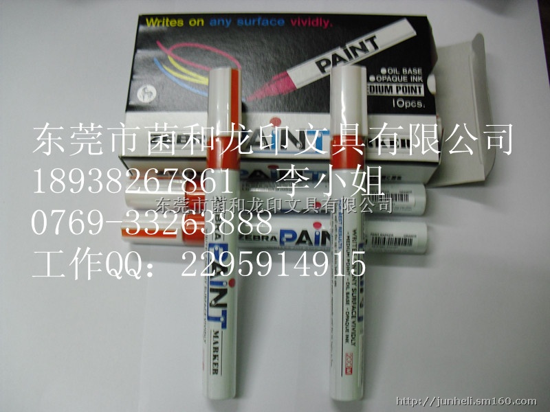 颜色有红、蓝、黑、绿、黄、橙、茶、紫、水蓝、粉红、咖啡,黄绿,白,金,银,等10多种颜色可供选择 主要用途:可书写在光碟片、金属、玻璃、塑胶及压克力等任何物品表面,且防水,耐光,速干,无臭,附着力强,永不退色。