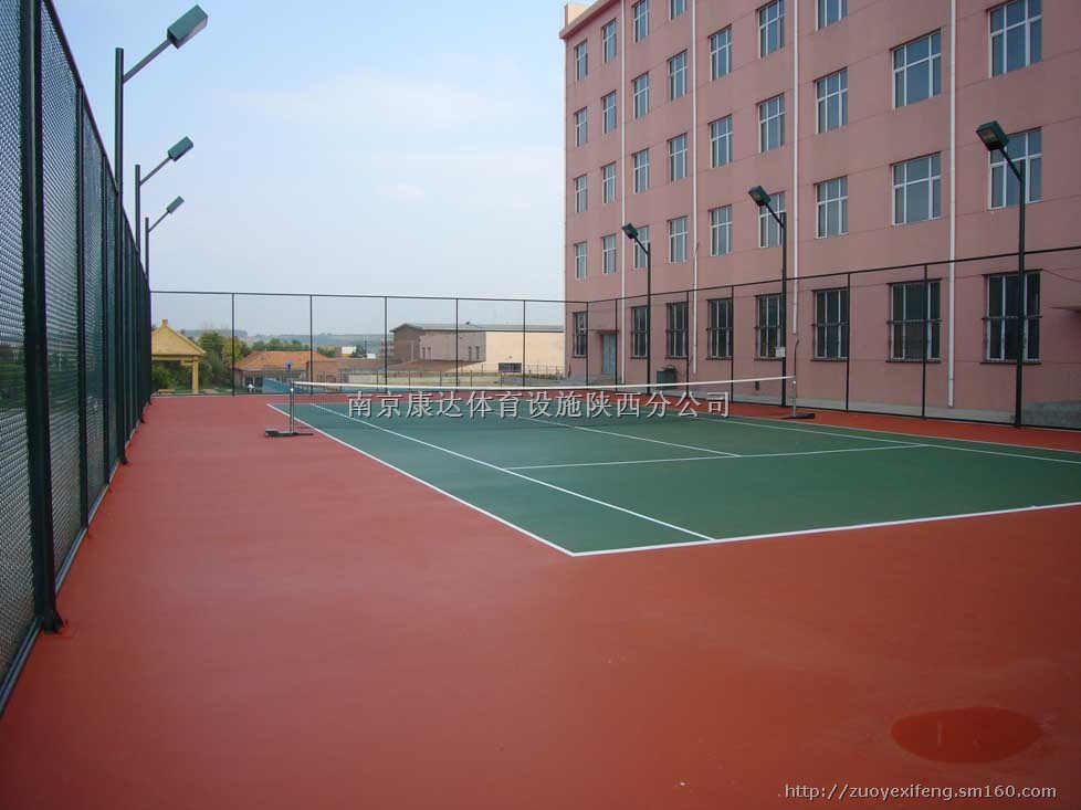 (2)铺装时由场地一侧开始,按场地宽度一次性刮胶。