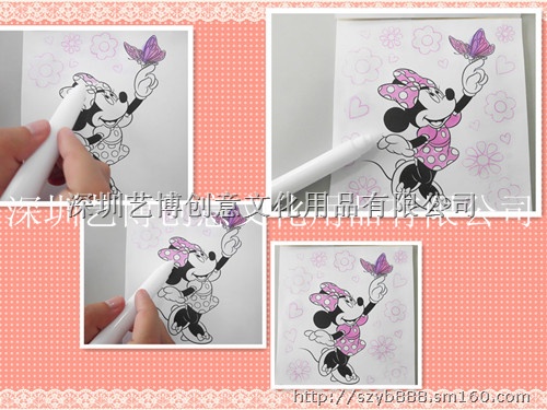 本画册同时还配有一套隐形色彩笔,隐形色彩笔只有在该类型的画册上画画,才可以呈现色彩丰富的色彩。