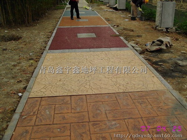 宇鑫彩色混凝土艺术压模地坪系统由六个部分组成,即:彩色强化料、着色脱模粉、密封保护剂、专用模具、专业工具和专业的施工工艺。