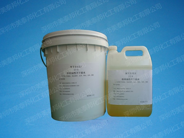 559型系油性不干胶水主要是由丙稀酸脂娄单体及进口助剂材料共聚而友的半透明液体。