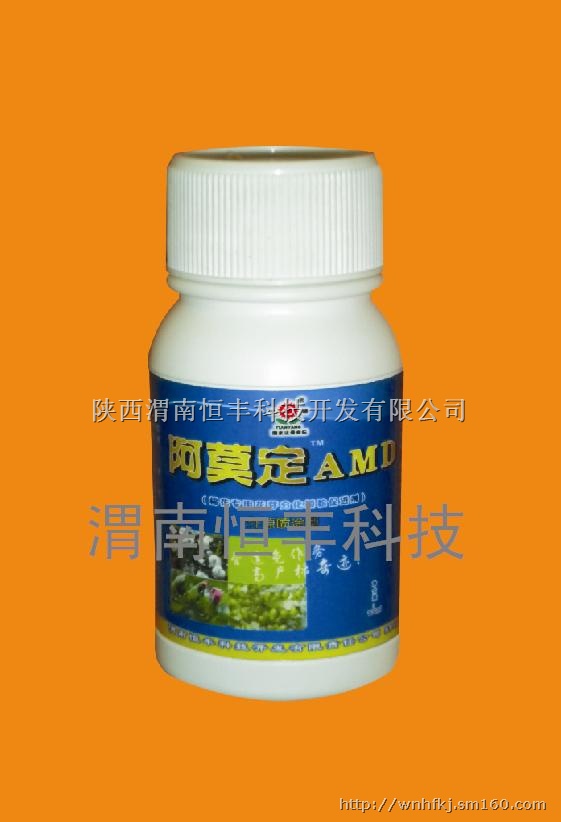 “AMD阿莫定”是一种活性很高的复合制剂。经科研人员2007--2009年,3年多时间的精心研制试验出的一种棉花专用花芽分化授粉促进剂。本品最大特点是能促进棉花花芽的形成及分化,使赘芽萌发成蕾,加快授粉受精、控旺缩节、防止蕾铃脱落,效果特别显著,对在干旱、阴雨等不良天气时也能很好的开花、授粉、坐铃。而且果枝多、蕾多、花多、铃多、产量高,每亩可增产100--300斤籽棉。棉花全生长期使用1--2次。-