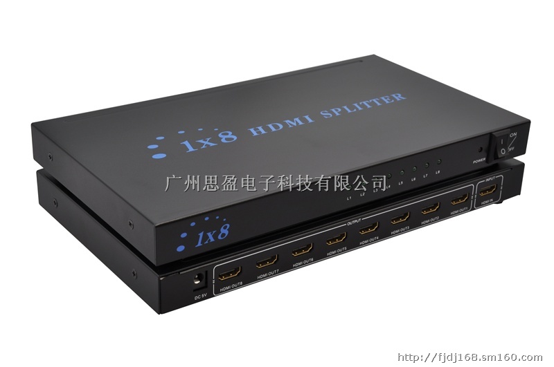 一进八出HDMI信号分配器。是将1路HDMI信号无损耗的分配出8路HDMI信号。支持HDCP,并且可以多台分配器串联使用,以满足更多设备的需求。安装方便,操作简易。