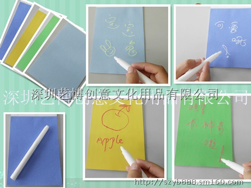 神奇变色画纸的特点:安全、环保、成本低廉、颜色丰富、不易弄脏孩子的手、衣物及地板。