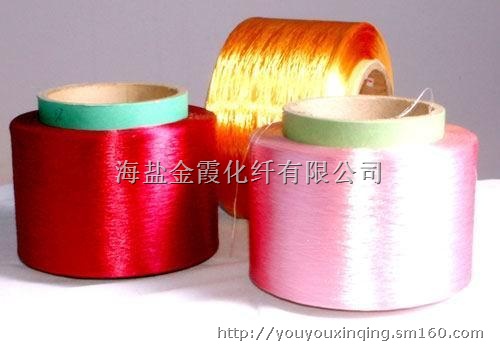 有色涤纶丝(涤纶有色丝)。我公司有十几年的纺涤纶色丝的经验的老厂,我们的产品规格从20D到1500D之间(分为单丝和复丝),颜色有2000种之多。产品类别有FDY、DTY、加捻丝、复合色丝、空变色丝、功能性色丝(阻燃、水溶性、吸湿排汗、抗紫外线、抗静电)、阳离子(低温可染)应用的领域非常广泛,如:纺织,编织,经编,制线等行业都可以应用,为许多客户节省时间和成本。